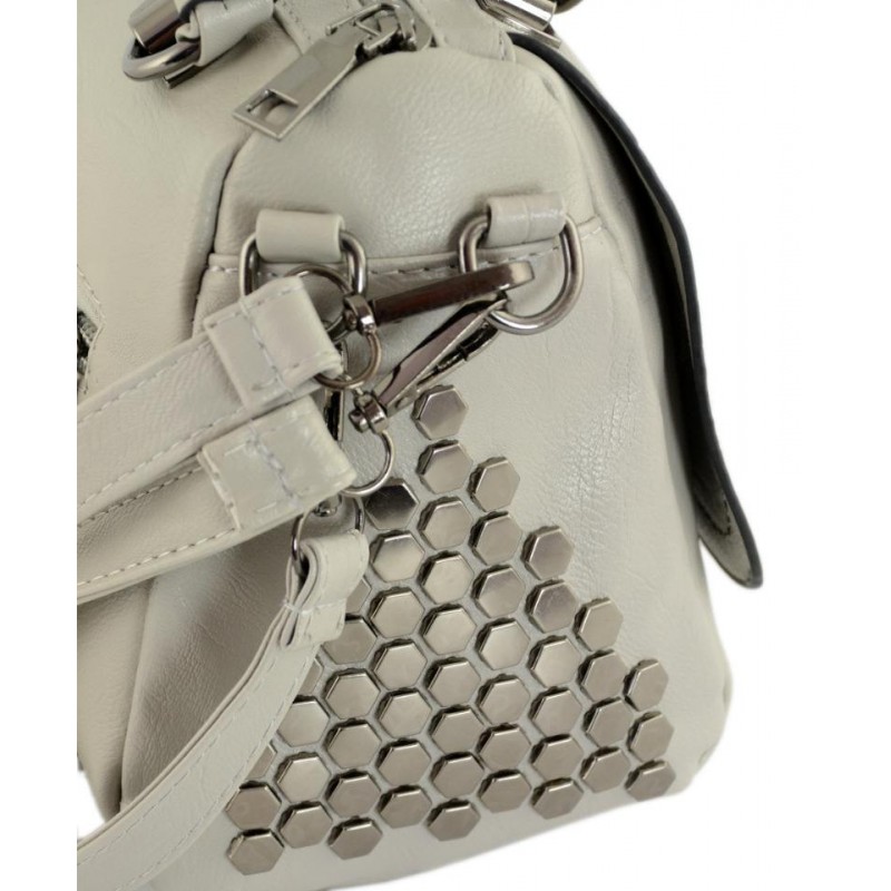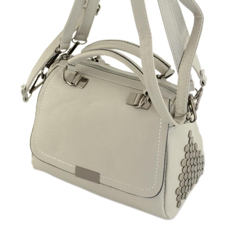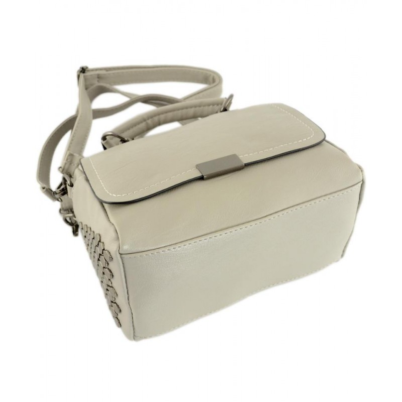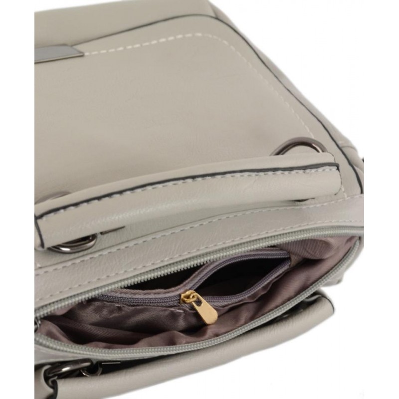 - Сумка TRAUM 7220-43 світло-сіра з лицьового боку прикрашена клапаном.