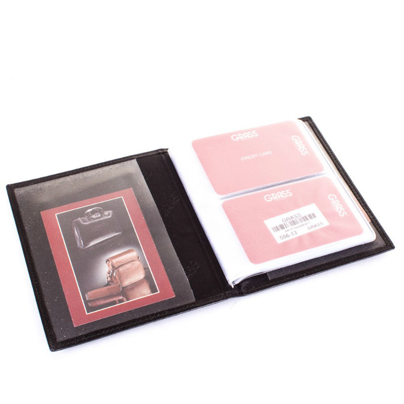 - Вертикальна візитниця шкіра GRASS 556-13 чорний дрібний флотар.