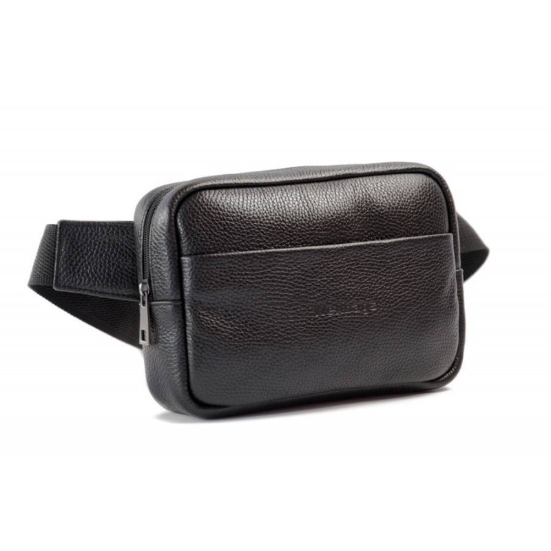 - Зручна чоловіча шкіряна сумка на пояс WELLBAGS Waist Bag Leon black wb020.1 чорна на підкладковій тканині.