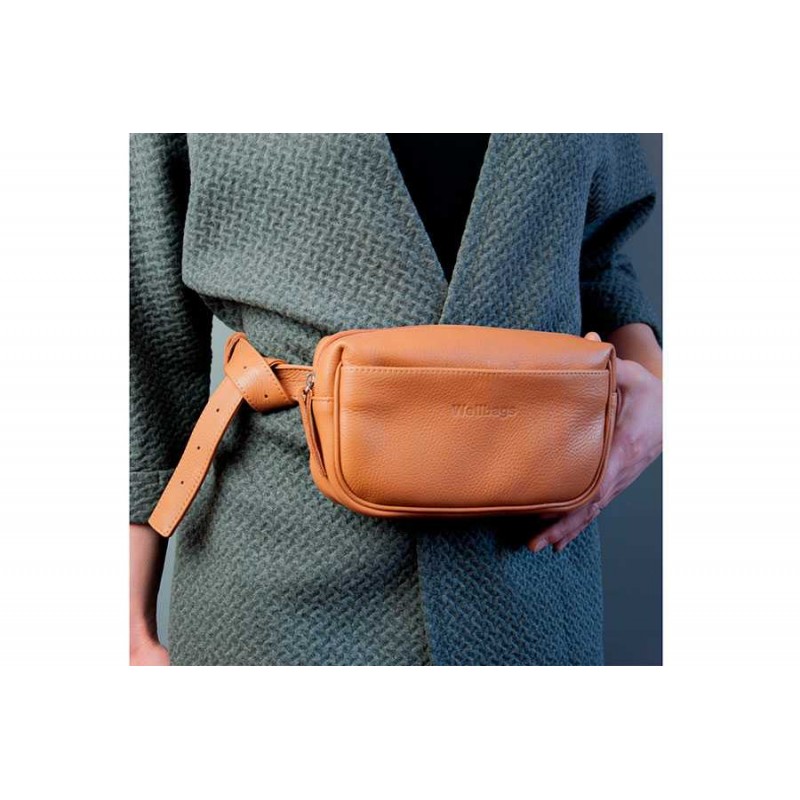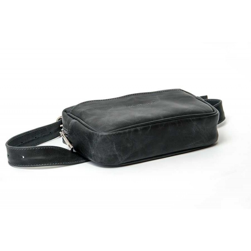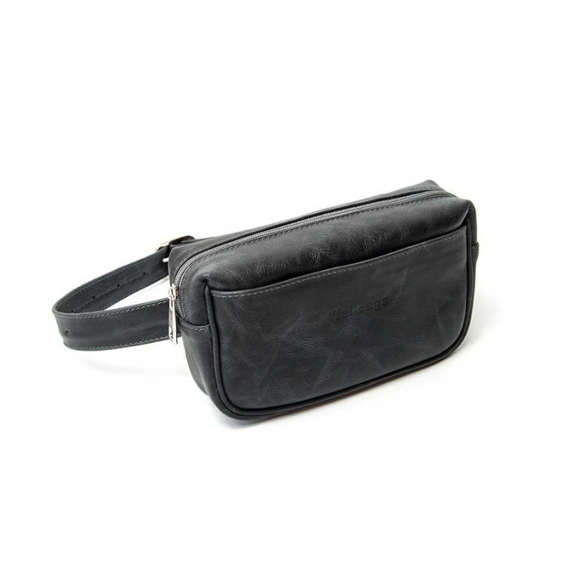 - Удобная кожаная сумка на пояс Wellbags Waist bag Agnes gray wb013.3 мраморно - серая.