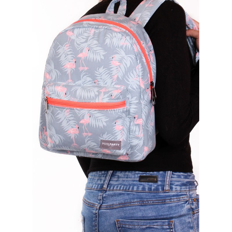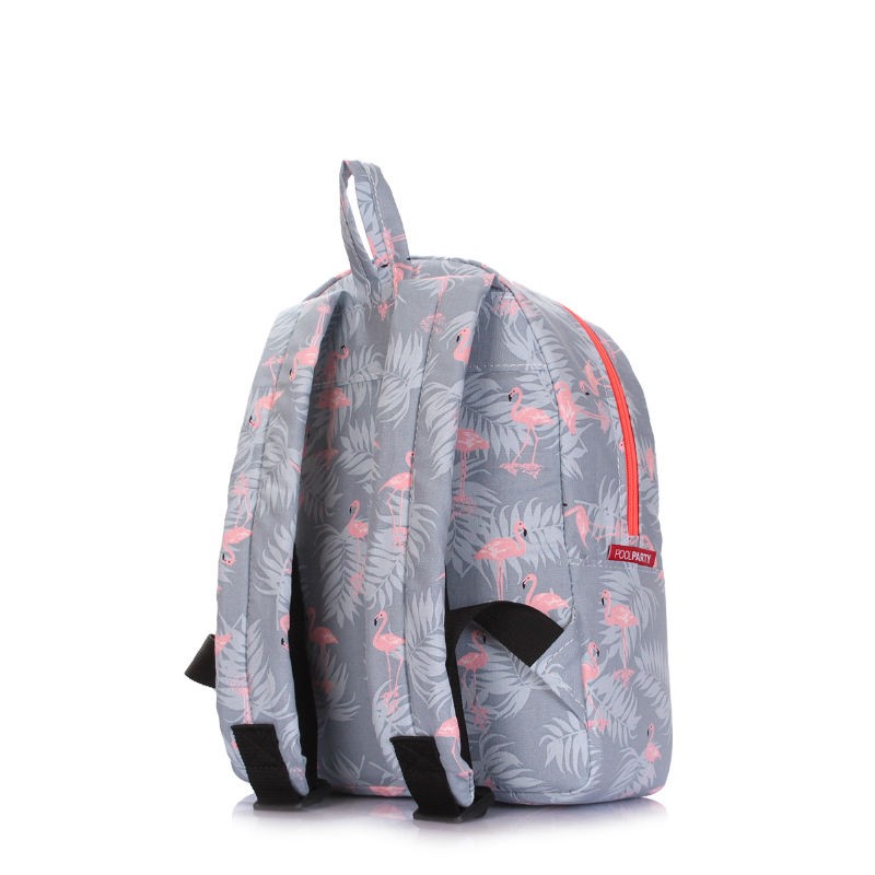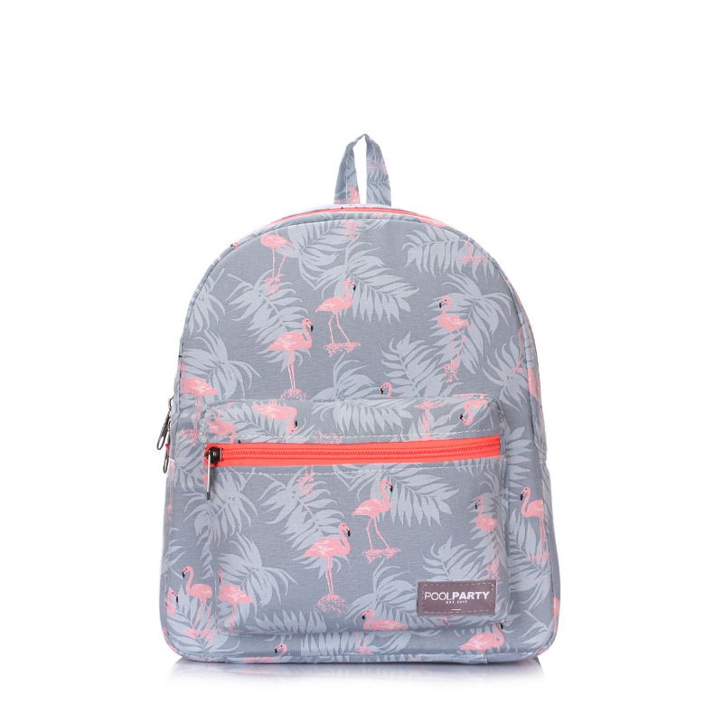 - Рюкзак женский POOLPARTY Xs xs-flamingo серый с принтом фламинго.