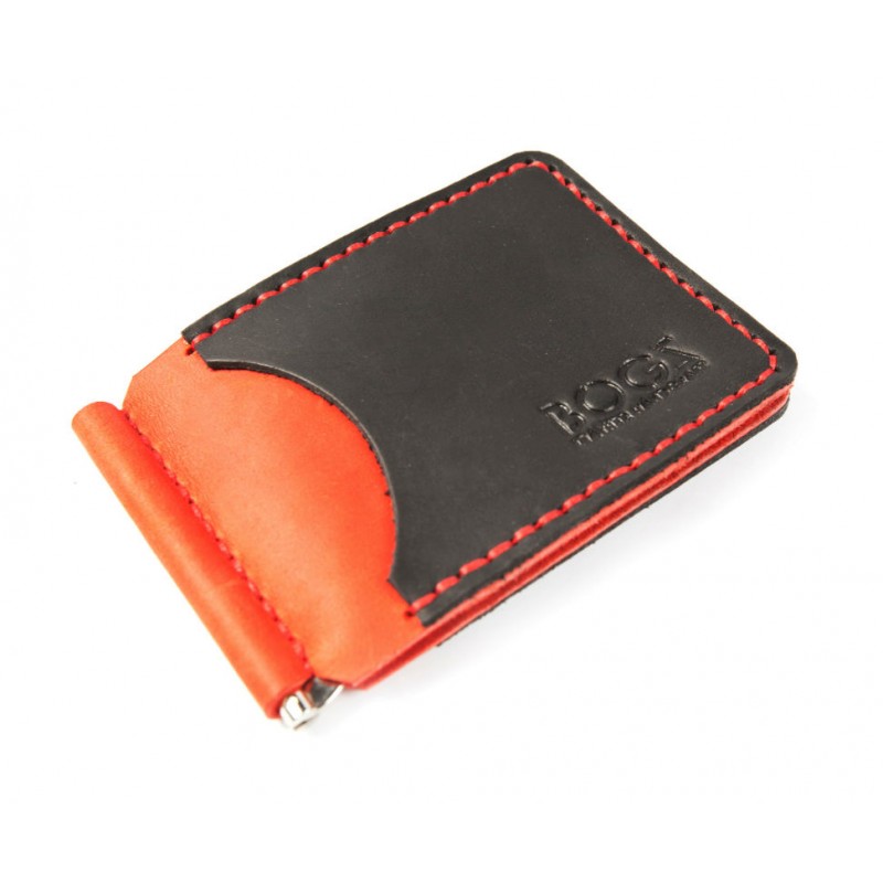 - Зажим для денег обычный BOGZ P34M5S1 красно-черный из натуральной кожи.