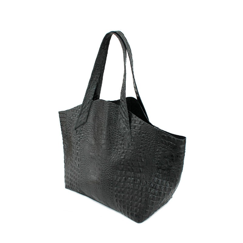 Женская сумка из натуральной кожи ПулПати Фиоре крокодиловая черная обязательно поразит вас качеством материала, из которого она создана так, как натуральная кожа пользуется большим спросом из-за тех качеств, которыми она отличается от любого другого материала.