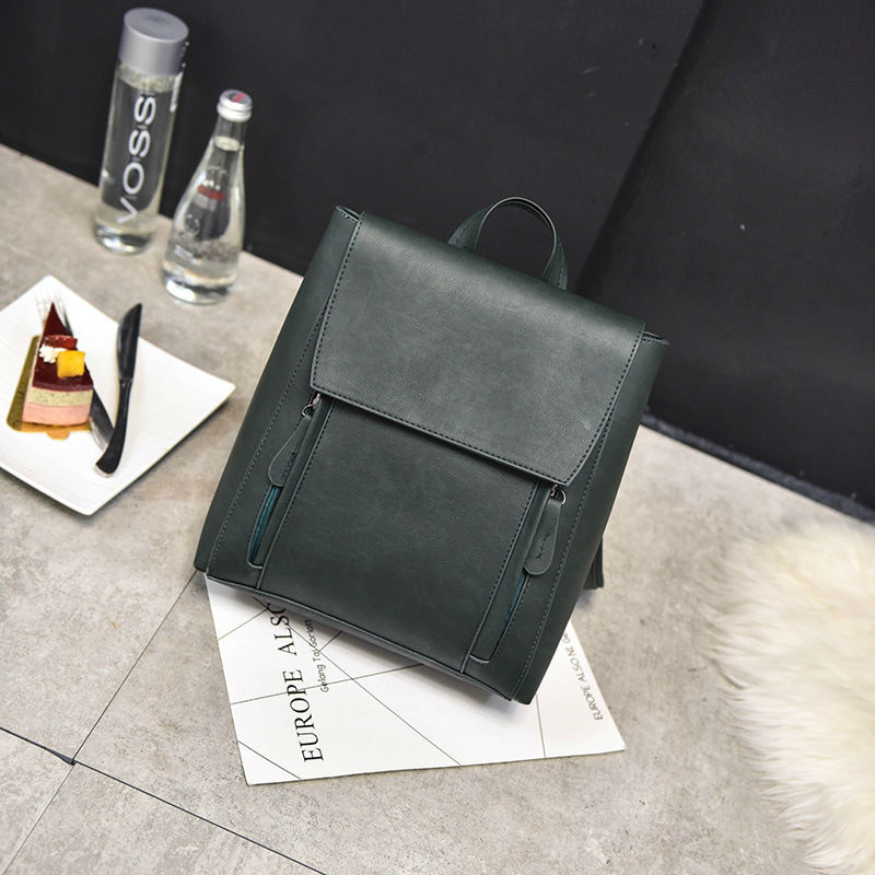 Женский рюкзак с двумя молниями 01540894938123green зеленый выполнен из плотного заменителя кожи.